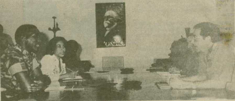 – Le communiqué conjoint, dans lequel s’exprime le soutien au Nicaragua, la critique à l’impérialisme, l’inquiétude pour la crise économique mondiale et ses effets sur les pays du Tiers-Monde, le soutien au peuple saharaoui, la critique à la politique expansioniste d’Israel, l’importance et la validité de l ‘OUA, la solidarité révolutionnaire avec le peuple de Vietnam, la condamnation de l’apartheid, entre autres sujets, et les deux délégations se félicitent du climat d’entente entre les deux pays.